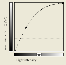 BrightnessContrastGamma adjustment in CCD imagingWhat is Gamma ? Think of a CCD sensor capturing an image. If there's a linear relationship between light intensity and CCD output signal we define this state as Gamma 1. We can draw this as a graph with the light intensity on the x-axis and CCD output on the y-axis:
